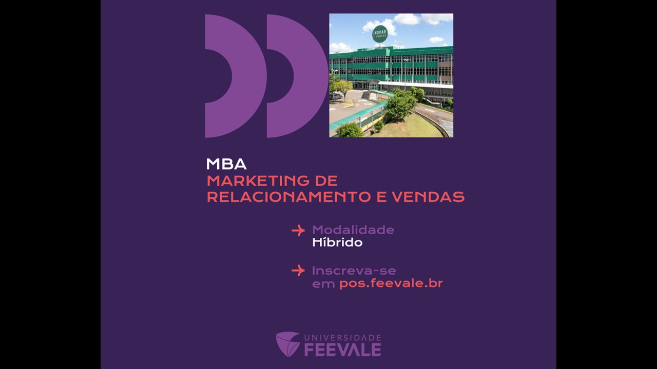 Inscrições e mais informações em: https://pos.feevale.br/cursos/marketing-de-relacionamento-e-vendas